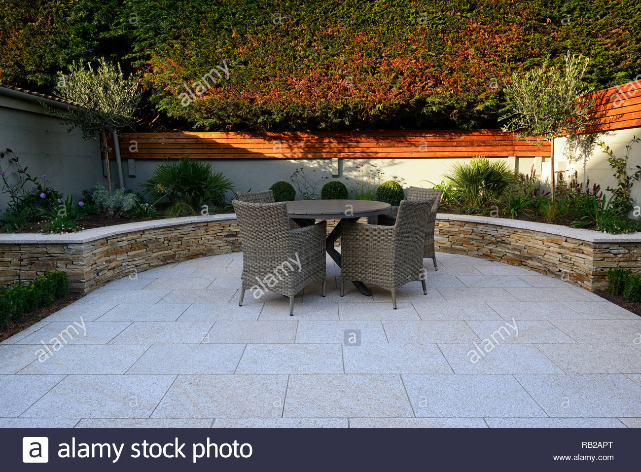 Shaded Shady Patio Newly Planted Beds Borders Rattan